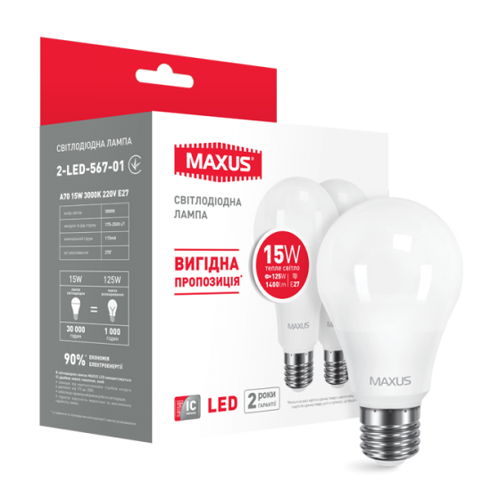 2-LED-567-01 A70 15W 3000K E27 (2 шт)